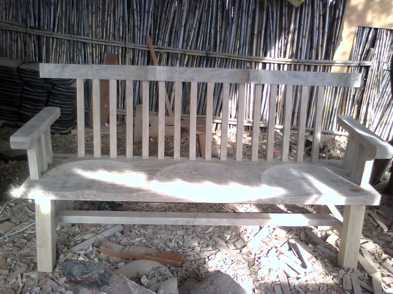 Banca de barrotes de tres asientos en madera solida de mezquite al natural
