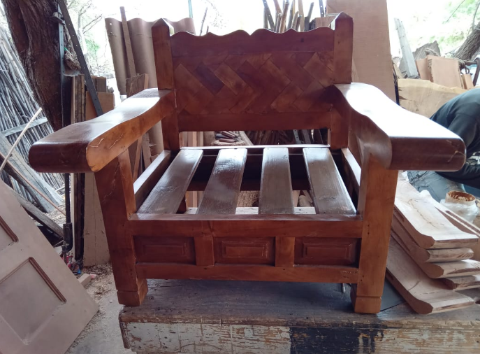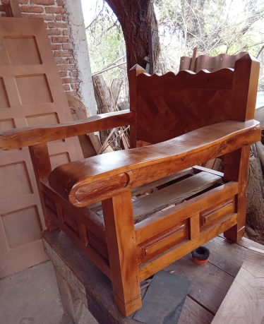 Sillón con petatillo y tableros alrededor en madera de mezquite